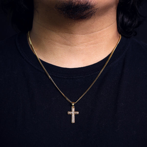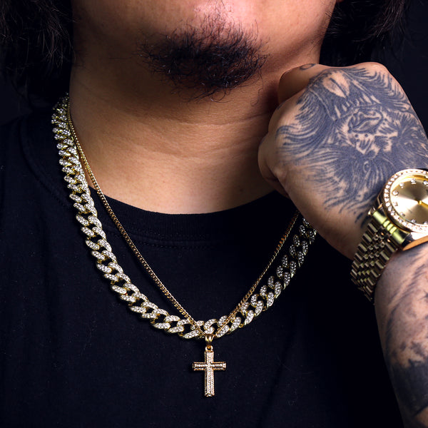 012 Cross Pendant 24" Cuban Chain Hip Hop Style 18k Gold Stainless Steel