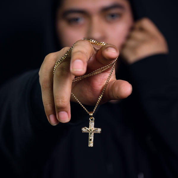 012 Jesus Cross Pendant 24" Cuban Chain Hip Hop Style 18k Gold Stainless Steel