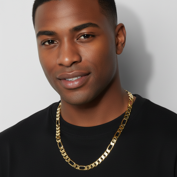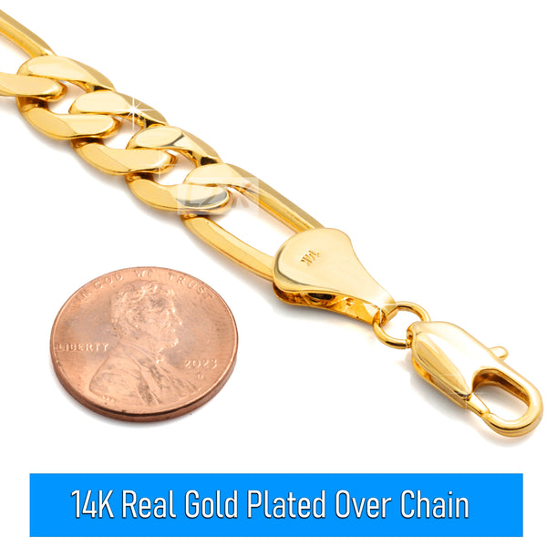 11 MM/24" FIGARO LINK CHAIN NECKLACE 14K REAL GOLD FILLED