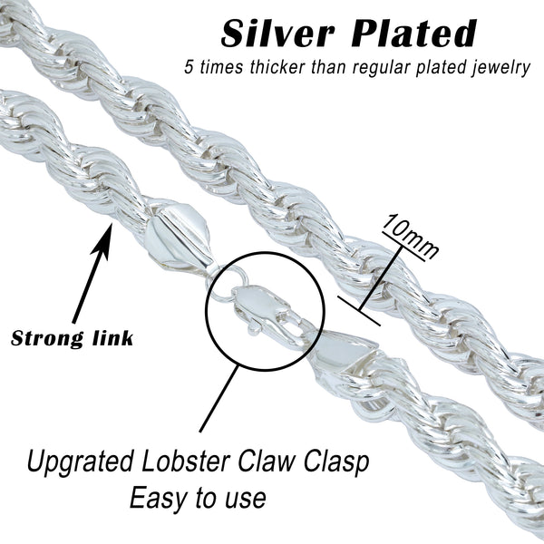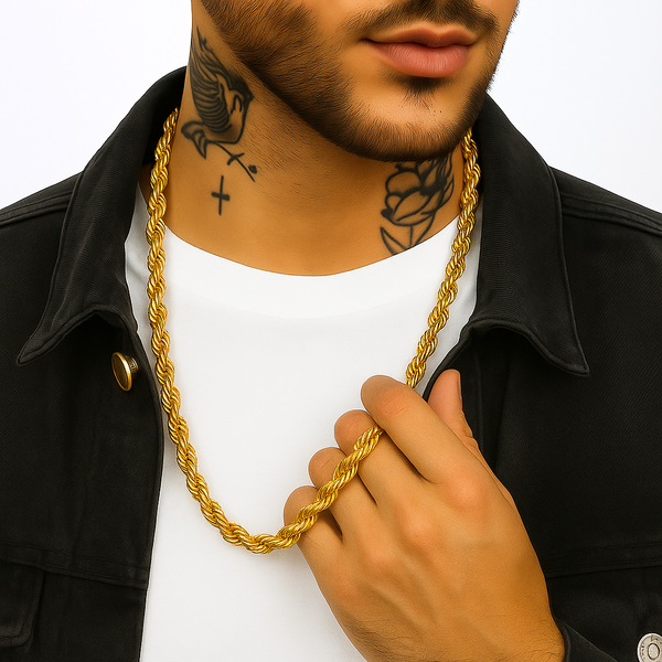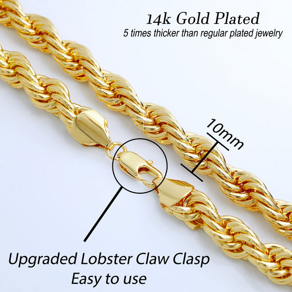 Chain Origin: China, Stamp: NO, Plating: Faux Gold, Silver, Black, Rose Gold Elegant 10mm Thick Rope Gold Plated Necklace – Timeless Luxury & Everyday Strength Elevate your jewelry collection with...