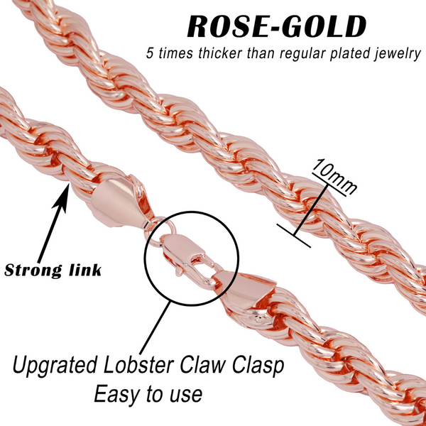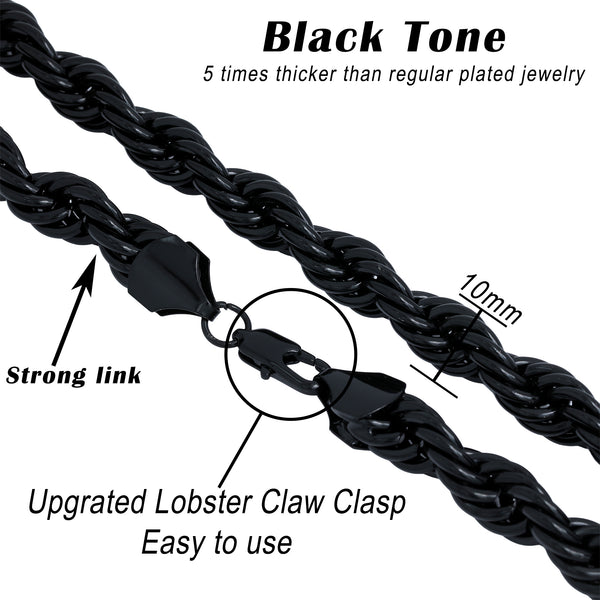 10mm/30" Thick Gold Rope Chain Gold Silver Black Rosegold
