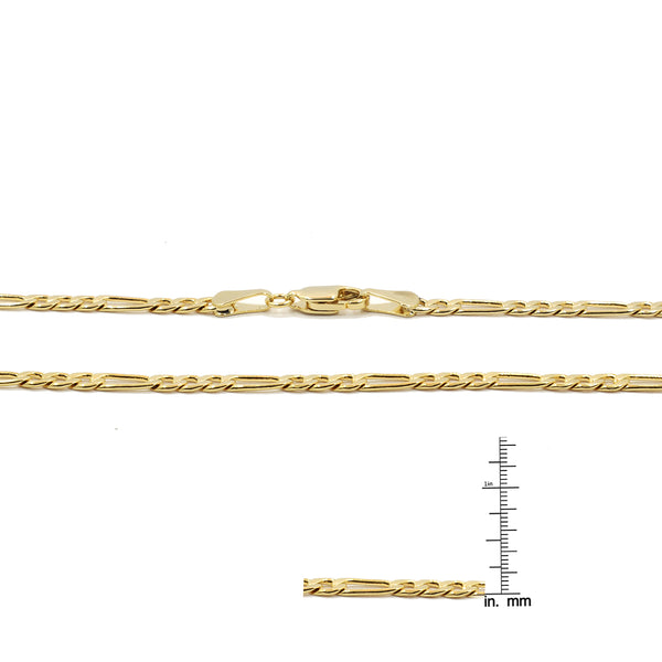 •Link - Figaro •Width: 3mm---This chain is very thin and ideal for Ladies.•Length: 24" INCH •Closure: Lobster clasp •Plating: 14K Real Gold (2MIS Electro)The piece is "14k GOLD" polished for the quality you...