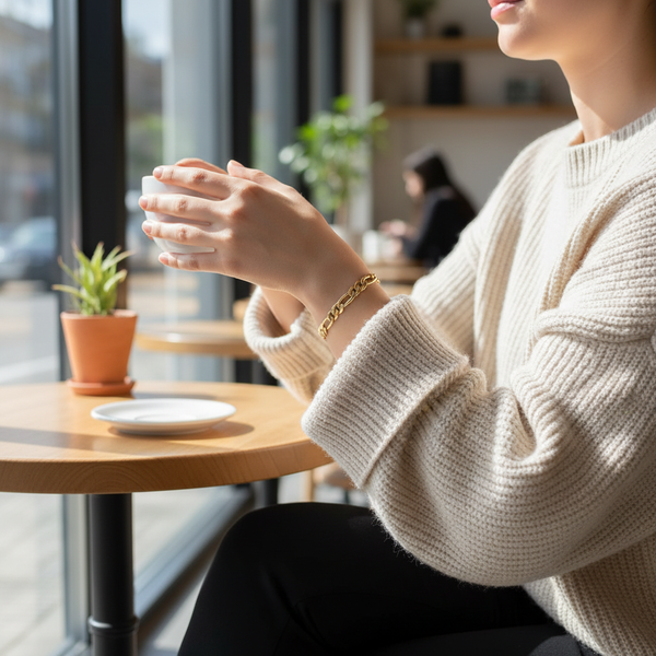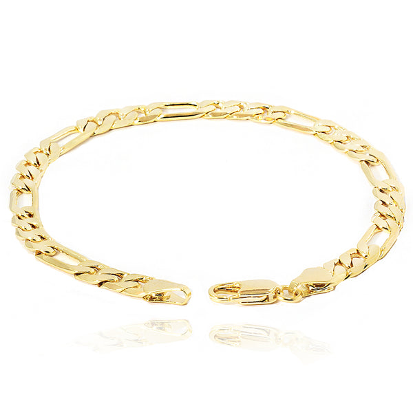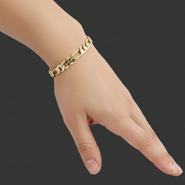 6MM/8"INCHES WIDE 14K GOLD FINISH FIGARO LINK BRACELET