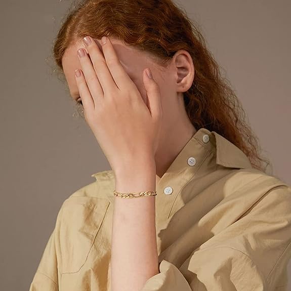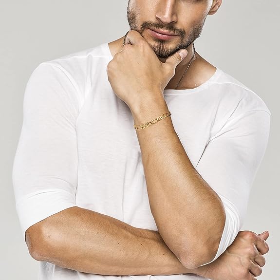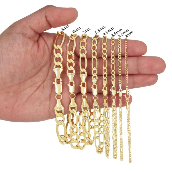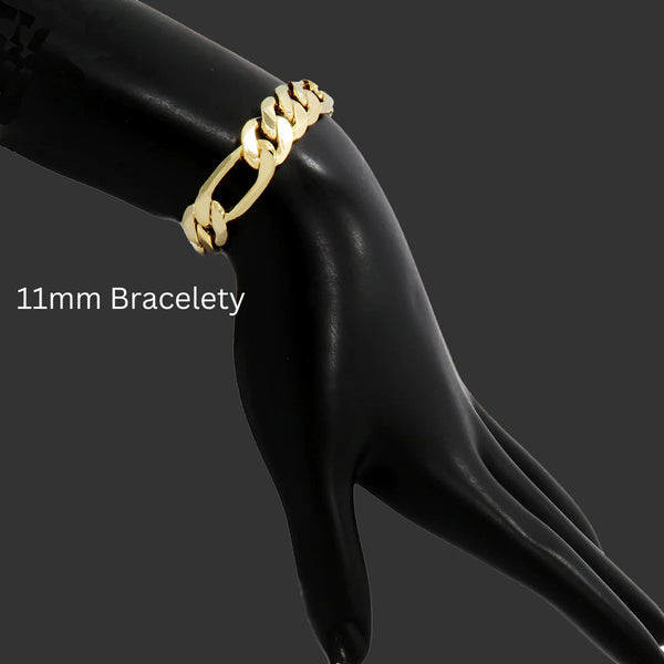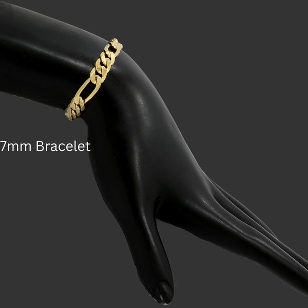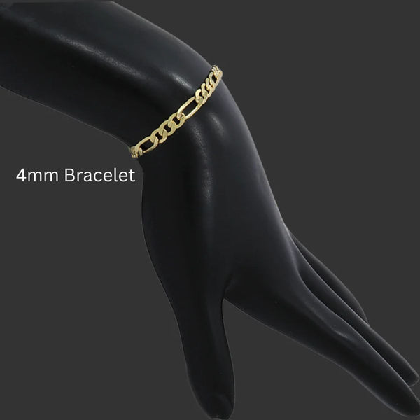 4MM/8"INCHES WIDE 14K GOLD FINISH FIGARO LINK BRACELET