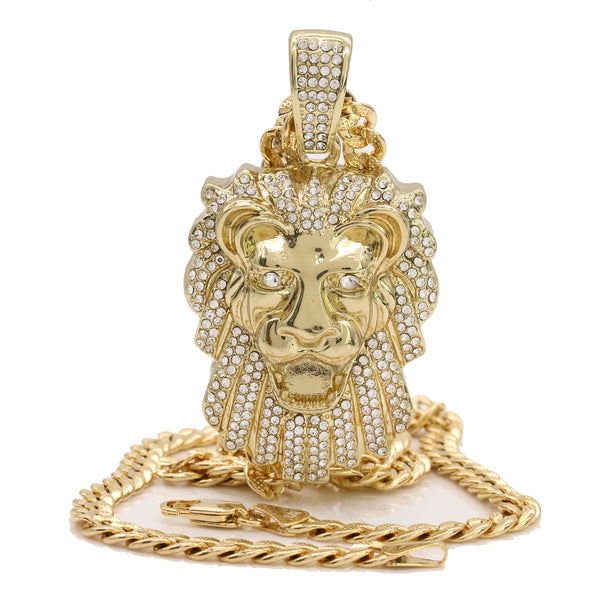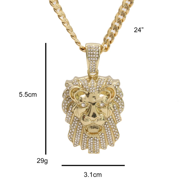 14k Gold Plated Thick Layer Cz Lion Head Pendant 24" Frost Cuban Chain