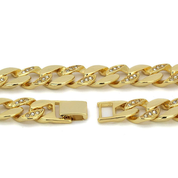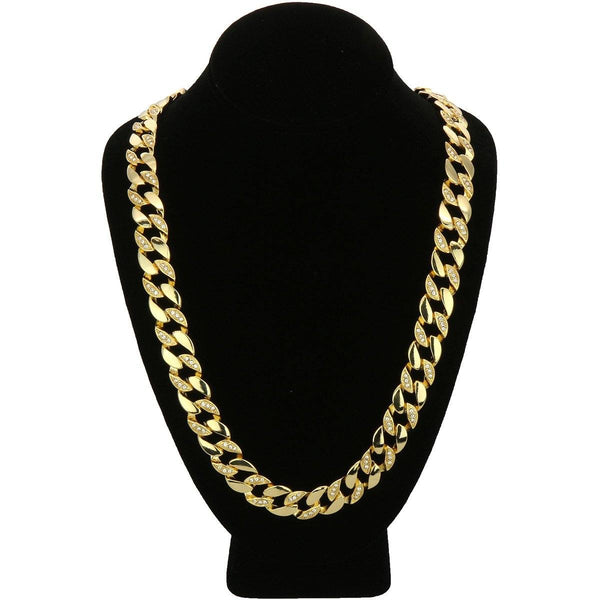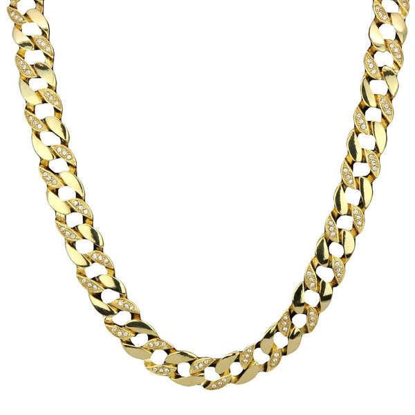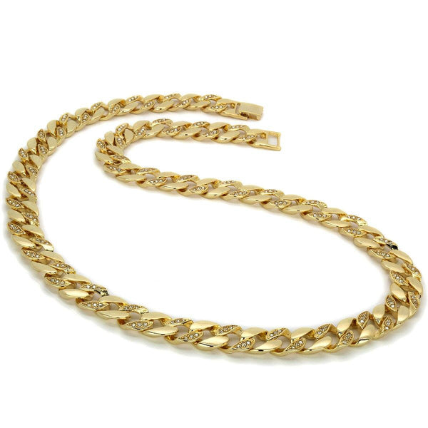Elegant Cuban Gold Plated Iced Out Necklace.  High-impact 18k Gold Plating over Brass. Lustrous Cz Finish in front of every other link. Carefully interlocked links that create a beautiful drape Strong...