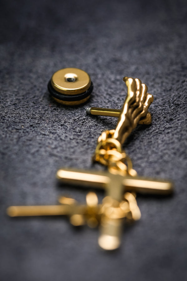 2 CROSS SKELETON HAND DANGLE SST EARRINGS Gold Stainless Steel Plain Skeleton Hand Cross Dangle Gold Stainless Steel Filled Earring Measurements: 8mm Pierced Stud Earrings CLASP BACKS To Make You More Shiny...