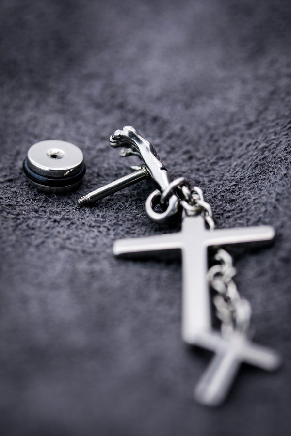2 Cross Dangle Skeleton Hand White Gold SST Plain Earring