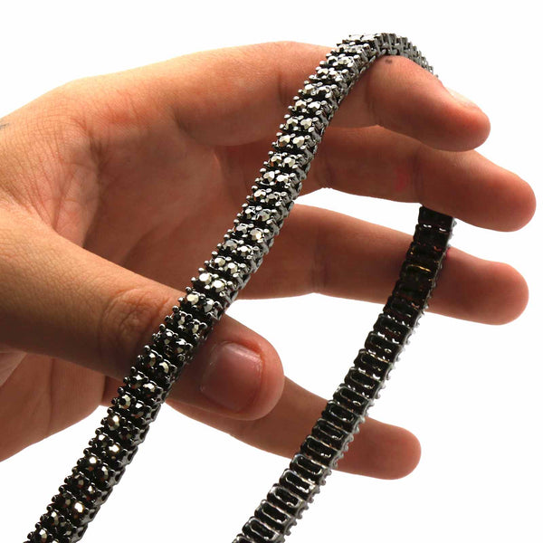This 2 Row Tennis Chain is made meticulously with 14k Hematite Plating then each CZ Diamond is hand placed with precision.  There's no doubt tennis chains are at the forefront...
