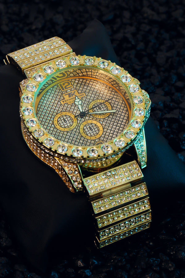3 Rings Gold Ice Out Techno KING Watch Big Cz