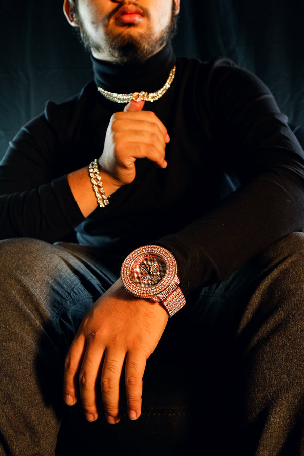 3 Rings Rose Gold Ice Out Techno KING Watch