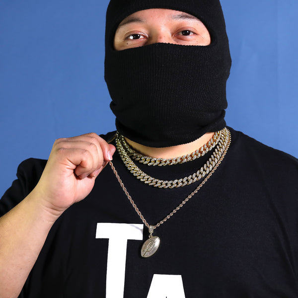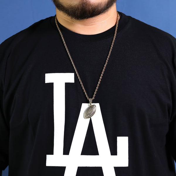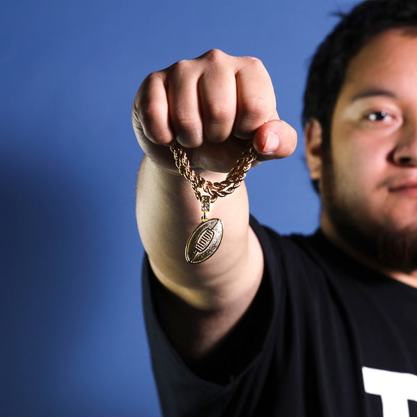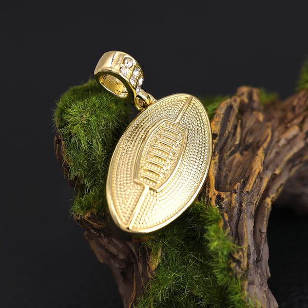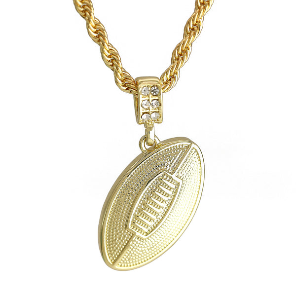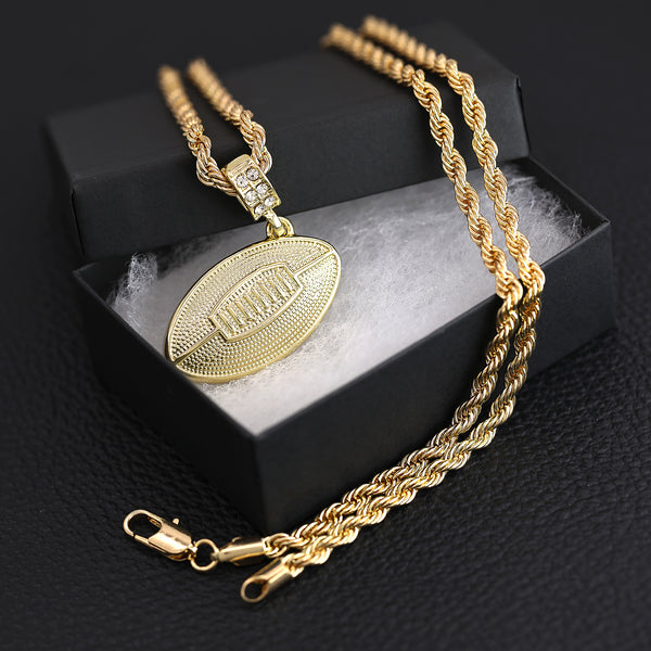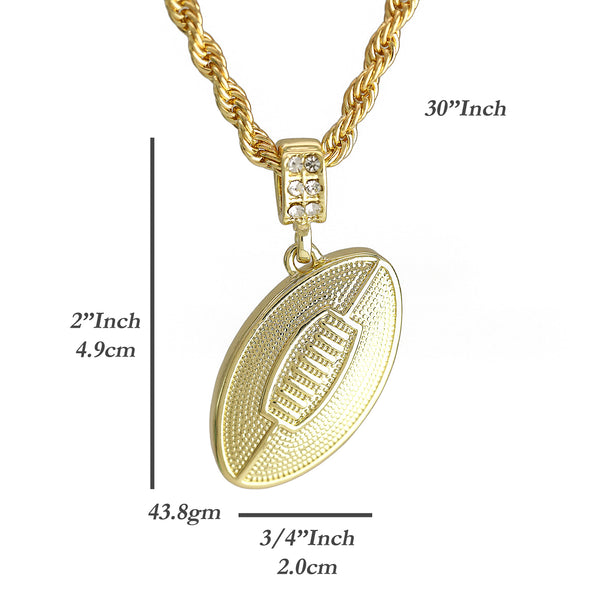 3D Football Pendant 30" Rope Chain Hip Hop Style 18k Gold Plated