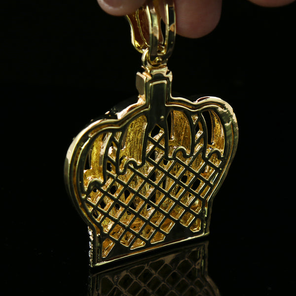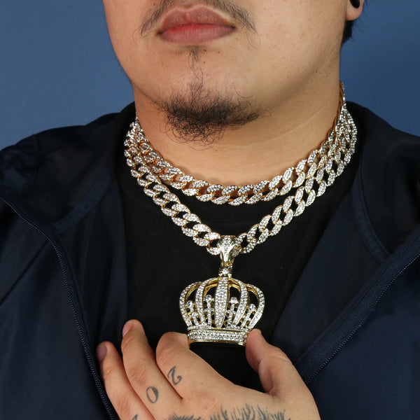 3pc Cz Large Queen Crown Pendant Gold Plated 18, 20" Fully Cz Cuban Choker Chain