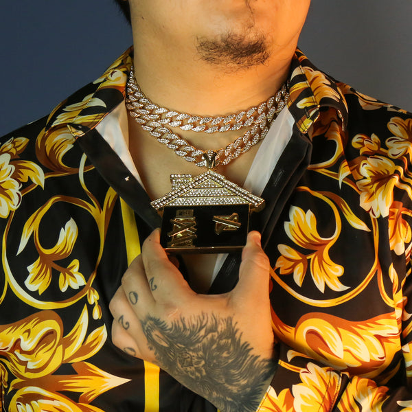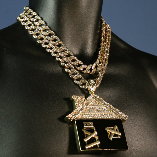 3pc Set – Huge Bando House Pendant & Iced Cuban Chains 18"/20"