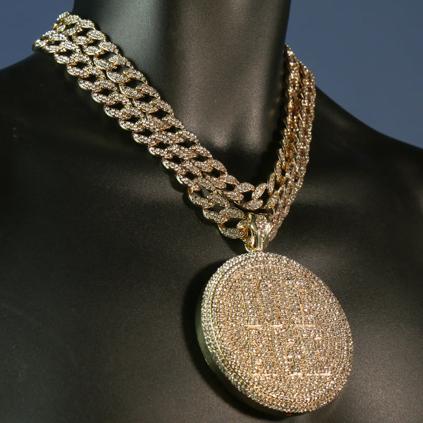 3pc Set Huge ICE AGE Round Gold Plated 18,20" Fully Cz Hip Hop Cuban Choker Chain