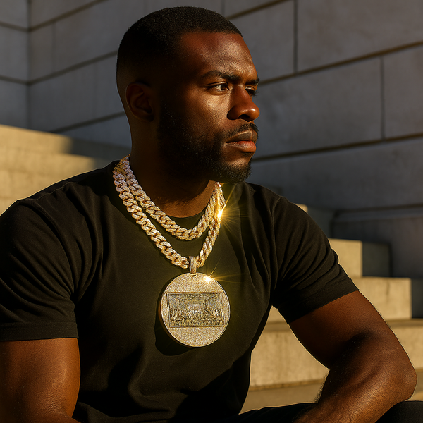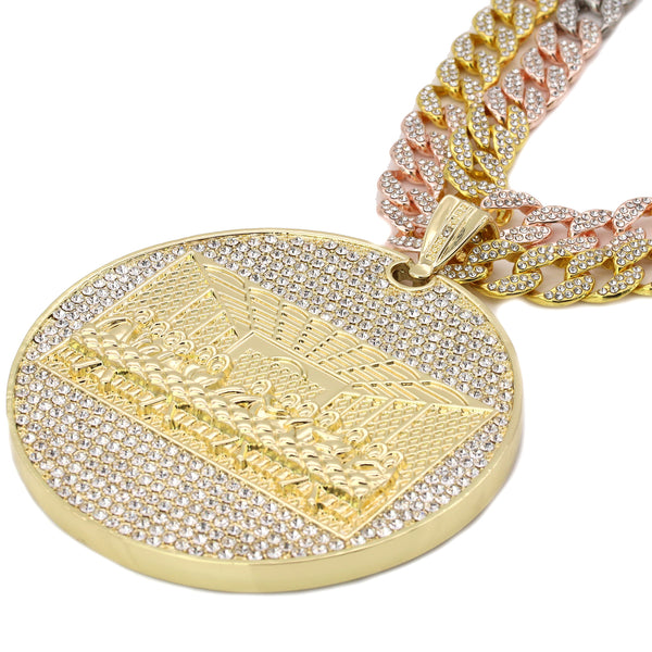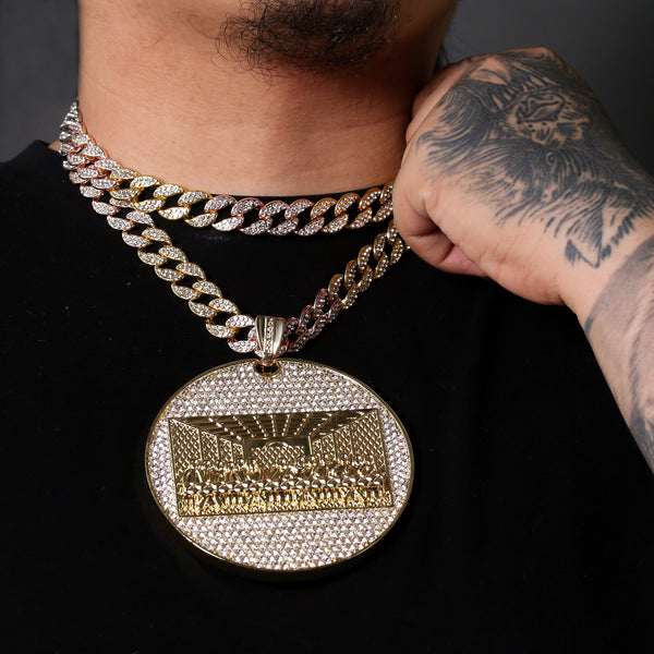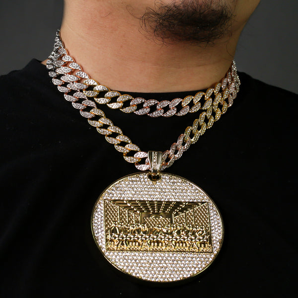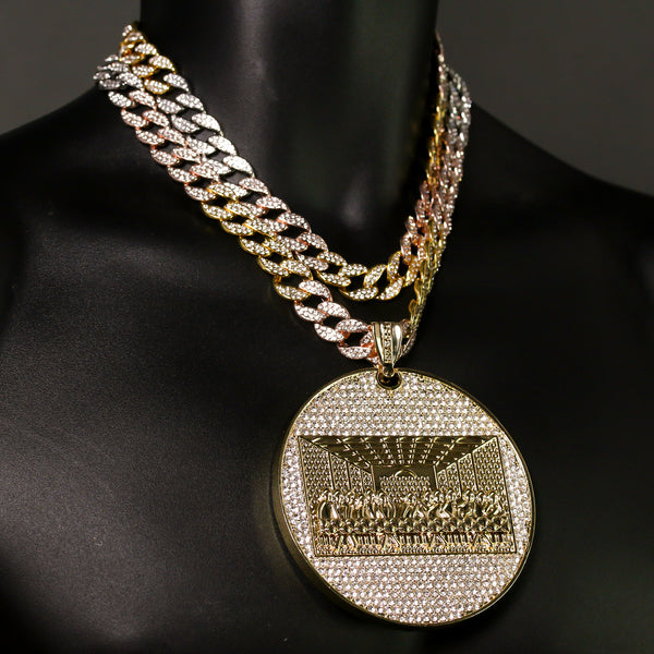 3pc Set – Huge Last Supper Pendant & 3-Tone Iced Cuban Chains 18"/20"