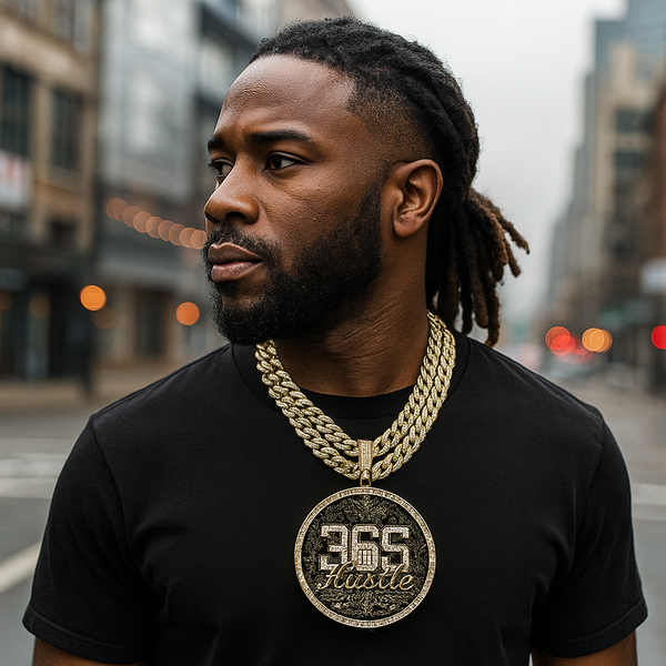 3PC Set – XXL 365 Hustle Money Pendant & Iced Cuban Chain (18"/20") Level up your style game with this bold 3-piece bundle featuring a massive 365 Hustle Money medallion...