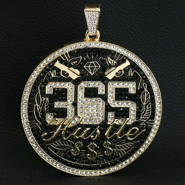3PC XXL 365 Hustle Money Pendant & Iced Cuban Chain Set 18"/20" – Gold Bling