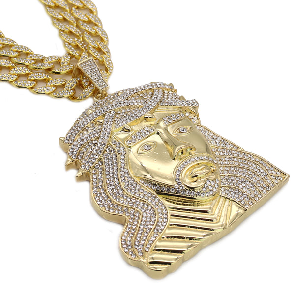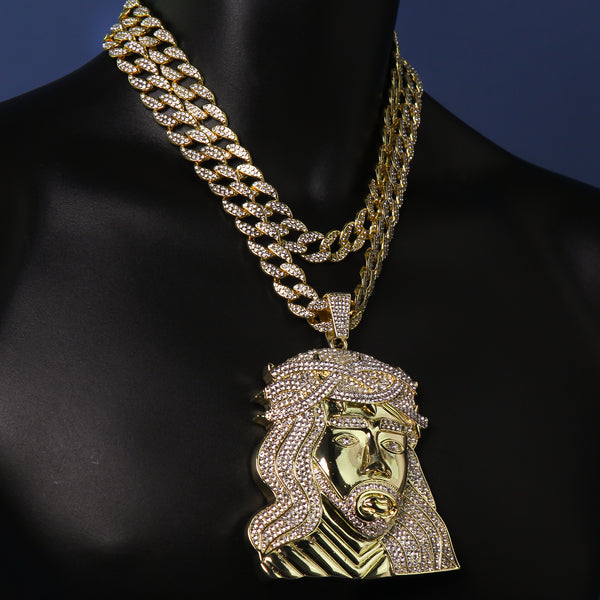3pc Set XXL Wide Face Jesus Pendant & 2 Iced Cuban Chains – 18"/20"