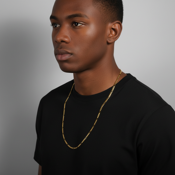 4 MM/30" FIGARO LINK CHAIN NECKLACE SLIM 14K REAL GOLD FILLED