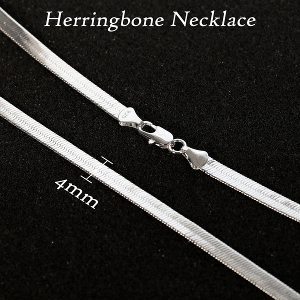 4mm Herringbone Choker Chain 20" / 925 Silver Plated