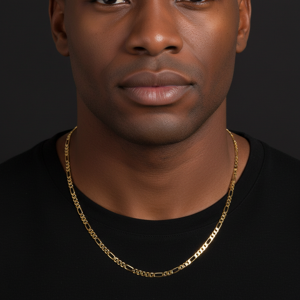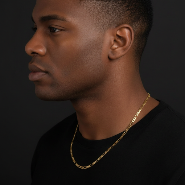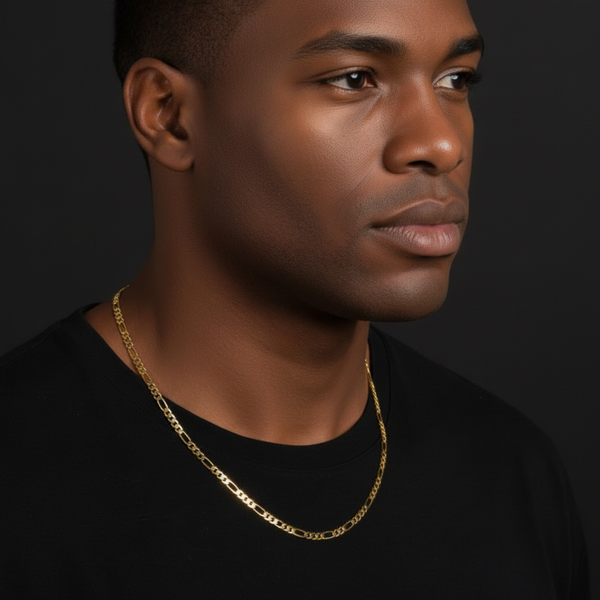 •Link - Figaro •Width: 3mm---This chain is very thin and ideal Both for men and Ladies.•Length: 20" INCH •Closure: Lobster clasp •Plating: 14K Real Gold (2MIS Electro)The piece is "14k GOLD" polished for...