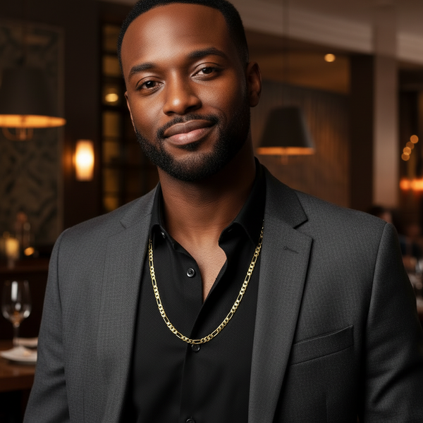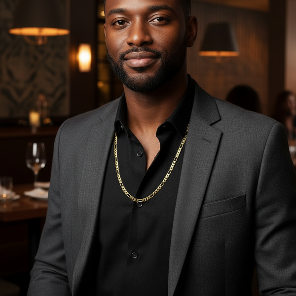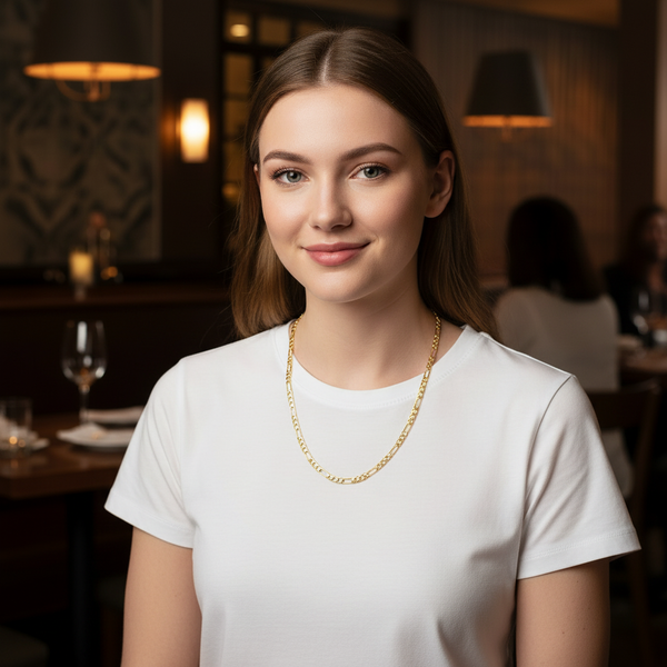 •Link - Figaro •Width: 6mm---This chain is very thin and ideal Both for men and Ladies.•Length: 24" INCH •Closure: Lobster clasp •Plating: 14K Real Gold (2MIS Electro)The piece is "14k GOLD" polished for...