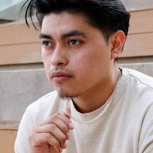 •Link - Figaro Link Chain•Width: 5mm -This chain is very thin and ideal for Ladies.•Length: 22" INCH •Closure: Lobster clasp•Plating: 925 Silver Plated The piece is "925 Silver Plated" polished...