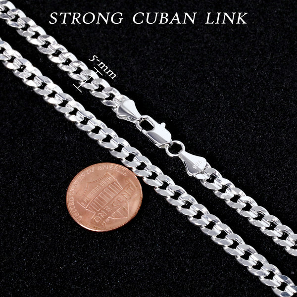 5mm Cuban Link Choker Chain 22" / 925 Silver Plated