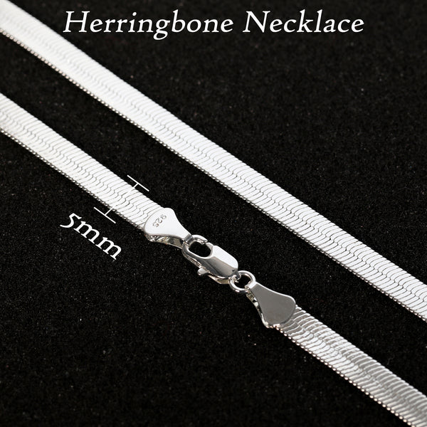 5mm Herringbone Choker Chain 20" / 925 Silver Plated