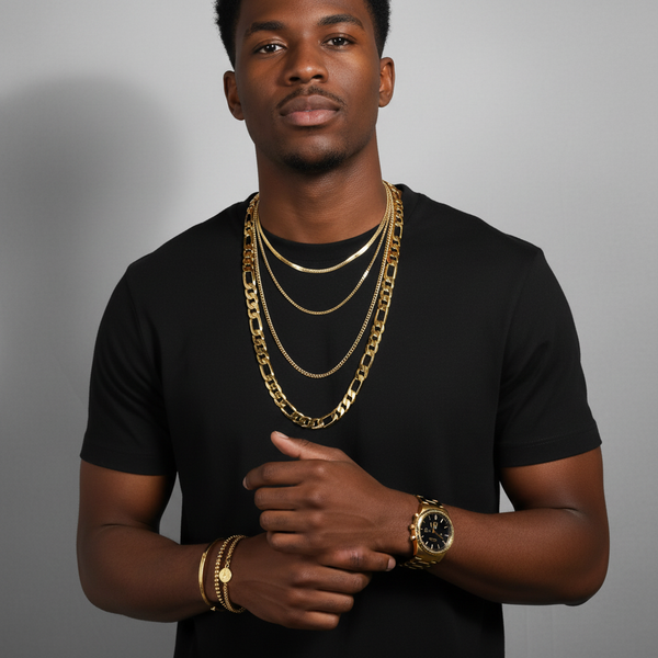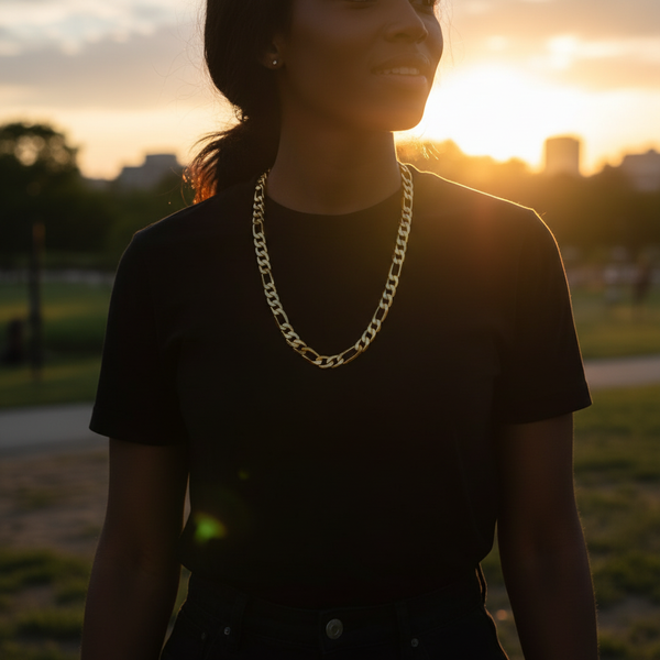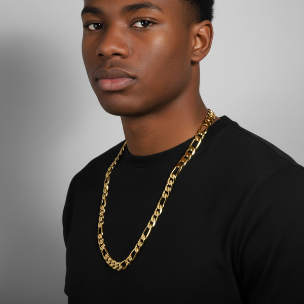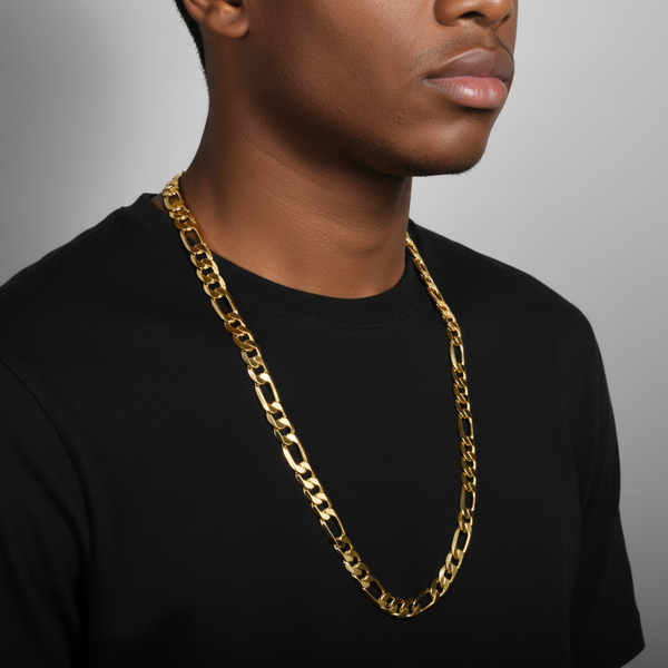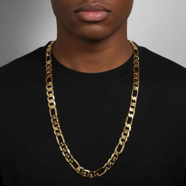 •Link - Figaro •Width: 12 mm---This chain is Big Chunky size and ideal for men•Length: 30" INCH •Closure: Lobster clasp •Plating: 14K Real Gold (2MIS Electro)The piece is "14k GOLD" polished for the...