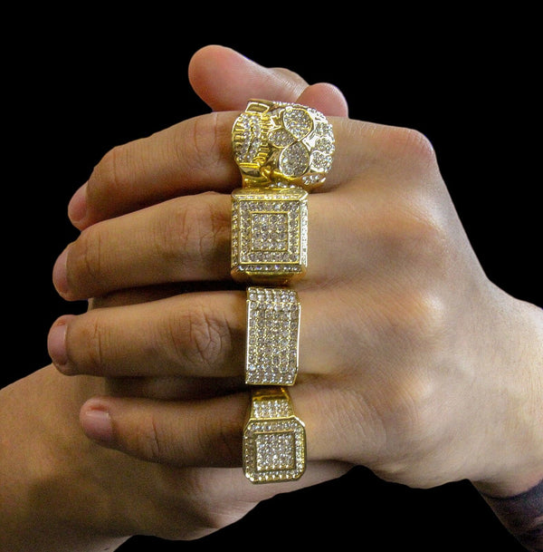 6 Row Rectangle Iced Out 4pcs Ring Set Bundle
