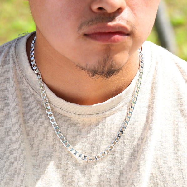 7mm Cuban Link Choker Chain 20" / 925 Silver Plated
