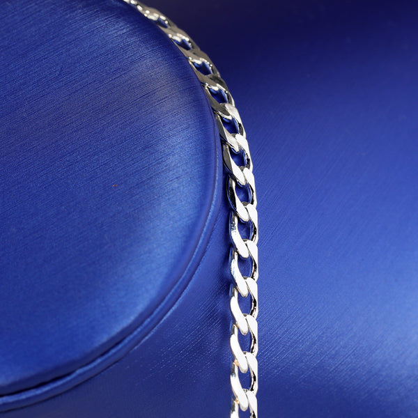 •Link - Cuban Link Chain•Width: 7mm -This chain is very thin and ideal for Ladies.•Length: 20" Inches •Closure: Lobster clasp•Plating: 925 Silver Plated The piece is "925 Silver Plated" polished for...