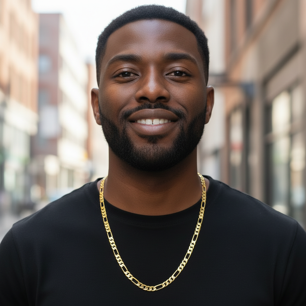 8 MM/24" FIGARO LINK CHAIN NECKLACE 14K REAL GOLD FILLED