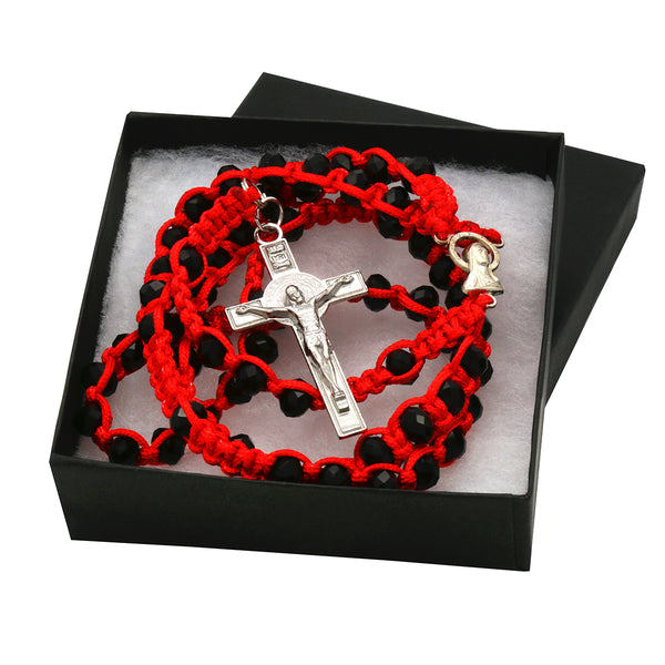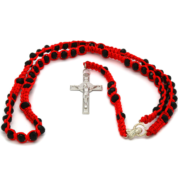 8MM Black Crystal Red Fabric Rosary With Cross Pendant