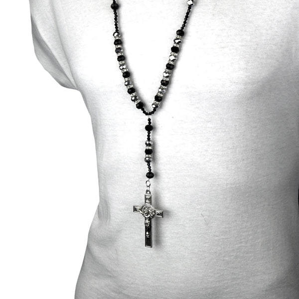 Black/Gray Crystal Beads Rosary With Jesus Cross Pendant. Fashion Religious Jewelry Necklace that fit for all, Men, Women, Boy or Girl Each Bead of the Necklace is Carefully checked Before Attached...