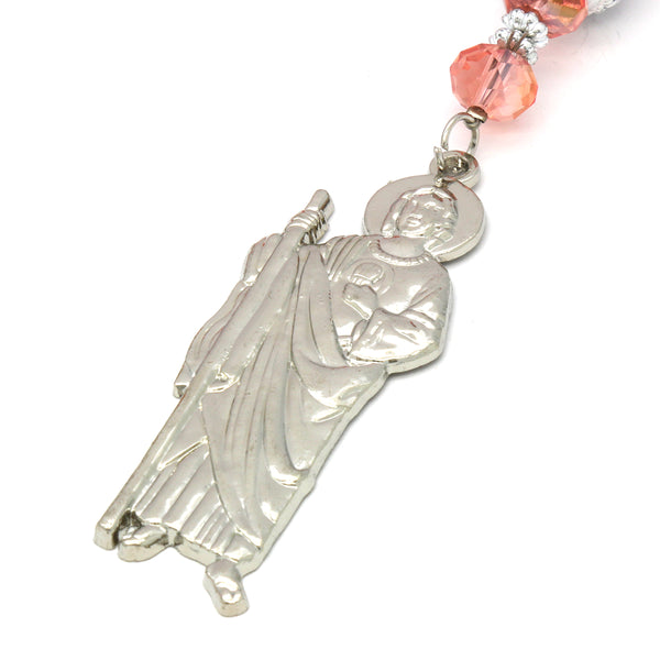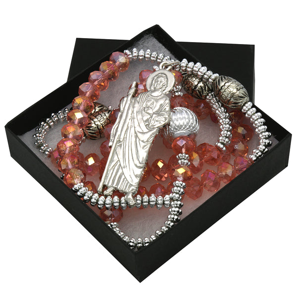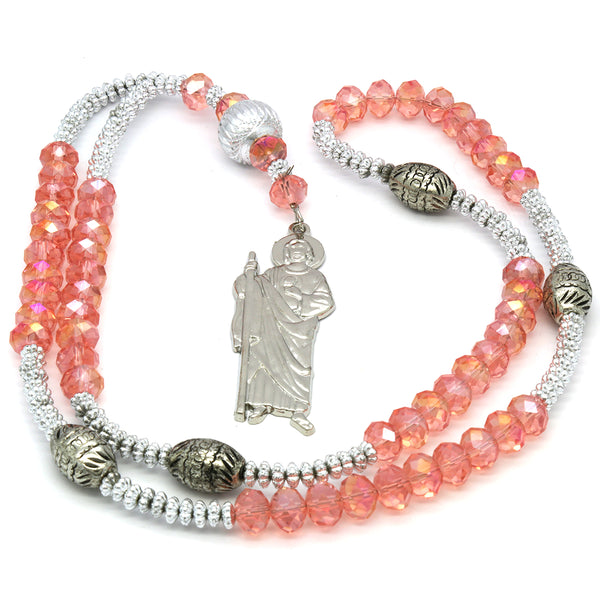 8MM Peach Crystal Rosary With SanJudas Pendant