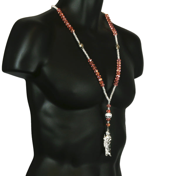 Peach Crystal Beads Rosary With SanJudas Pendants Fashion Religious Jewelry Necklace that fit for all, Men, Women, Boy or Girl Each Bead of the Necklace is Carefully checked Before Attached to...