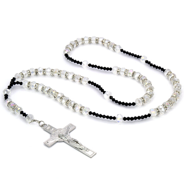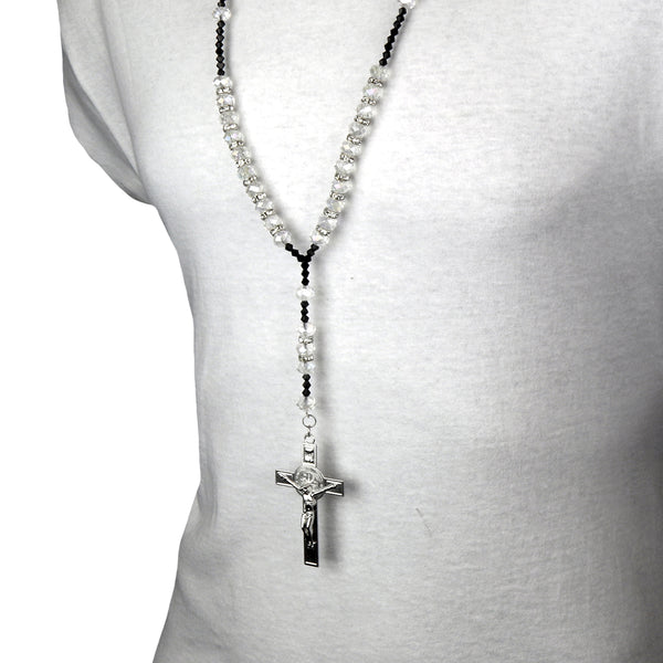 Clear Crystal Beads Rosary With Jesus Cross Pendant. Fashion Religious Jewelry Necklace that fit for all, Men, Women, Boy or Girl Each Bead of the Necklace is Carefully checked Before Attached...