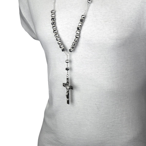 Gray Crystal Beads Rosary With Jesus Cross Pendant. Fashion Religious Jewelry Necklace that fit for all, Men, Women, Boy or Girl Each Bead of the Necklace is Carefully checked Before Attached...