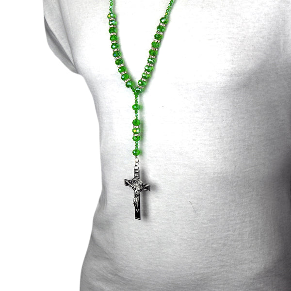 Green Crystal Beads Rosary With Jesus Cross Pendant. Fashion Religious Jewelry Necklace that fit for all, Men, Women, Boy or Girl Each Bead of the Necklace is Carefully checked Before Attached...