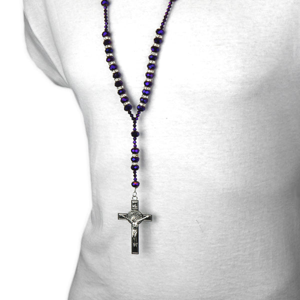 Purple Crystal Beads Rosary With Jesus Cross Pendant. Fashion Religious Jewelry Necklace that fit for all, Men, Women, Boy or Girl Each Bead of the Necklace is Carefully checked Before Attached...