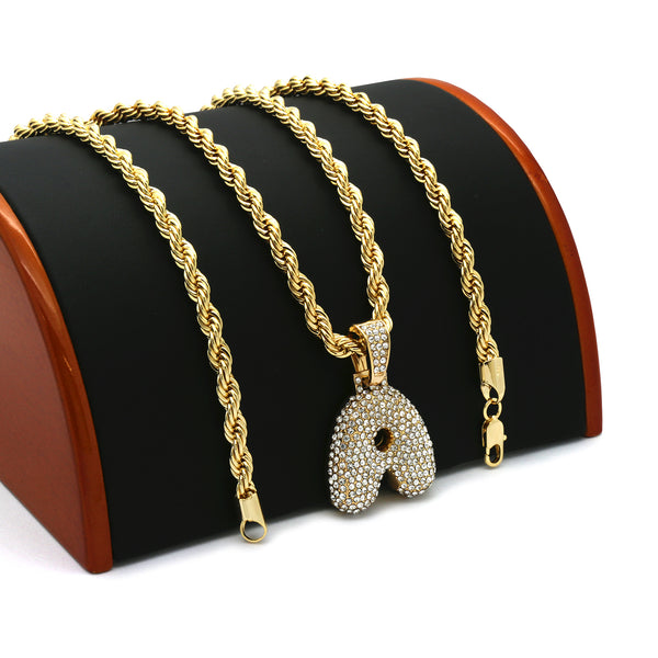 ROPE CHAIN ALPHABET PENDANT BUBBLE A-Z