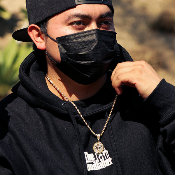 Chain Size: 4mm/24" Pendant Size: Weight: 33.3 Grams Measurements: 4.0cm x 2.5cm Material: Alloy Metal 18K Gold Plated. This Pendant hanging from a 4mm 24" rope chain . Each and every stone on...