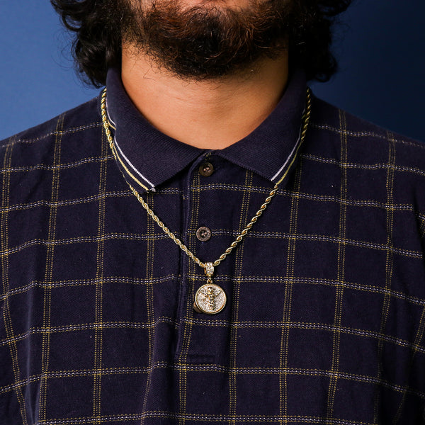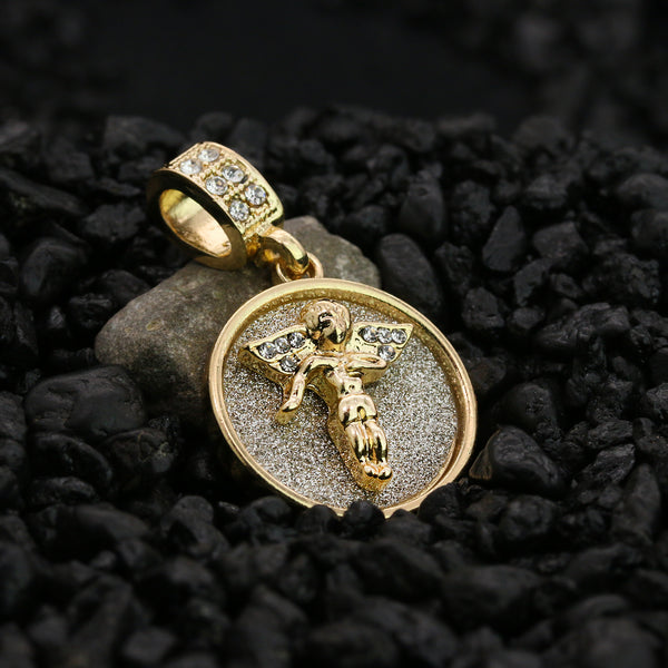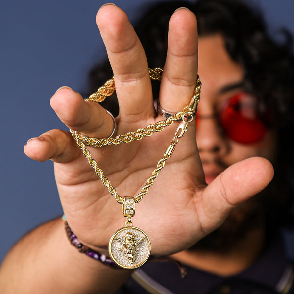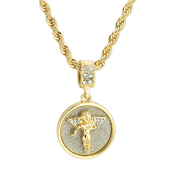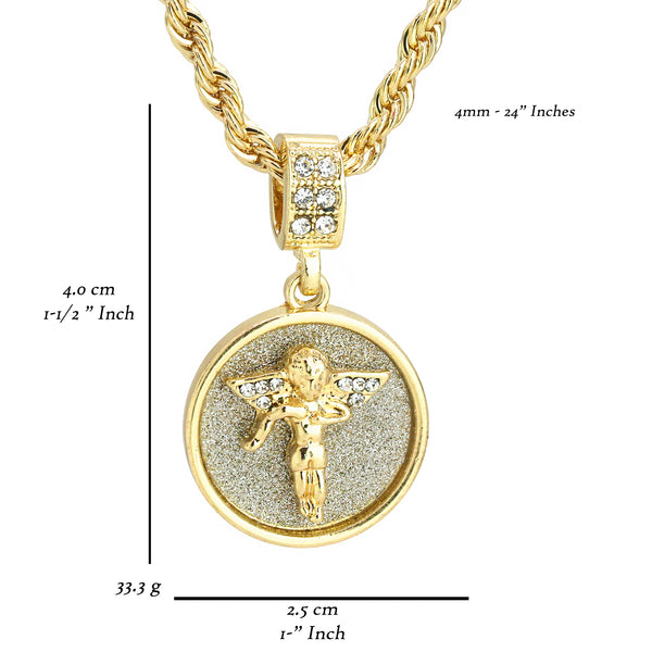 Angel Stardust Coin Pendant 24" Rope Chain Men's 18k Gold Plated Jewelry