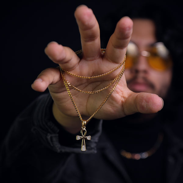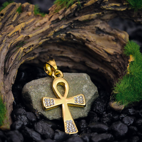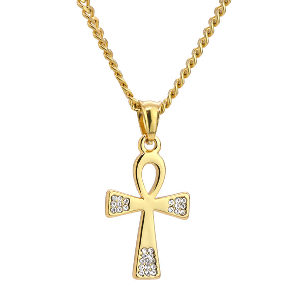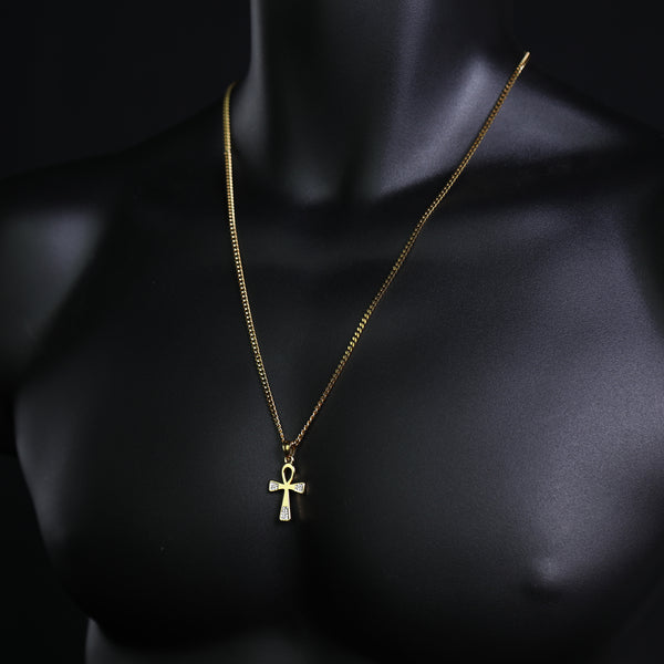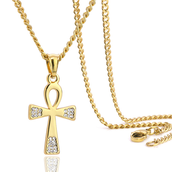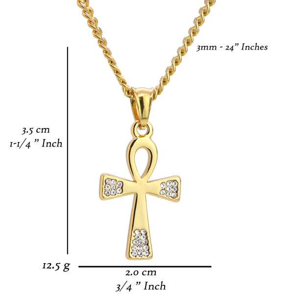 Ankh Pendant 24" Cuban Chain Hip Hop Style 18k Gold Stainless Steel