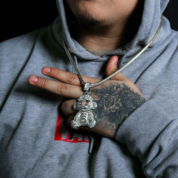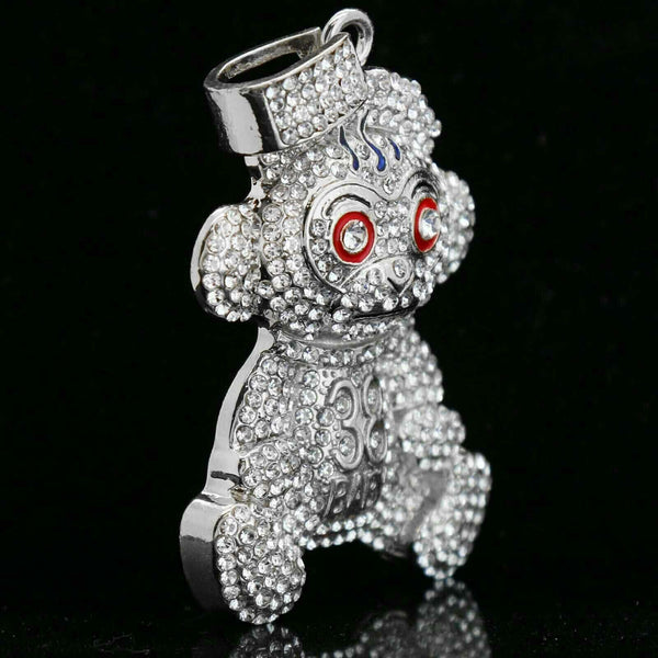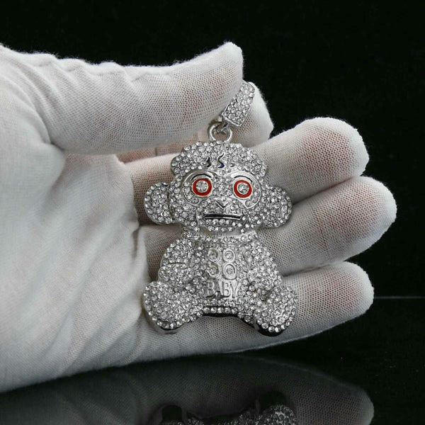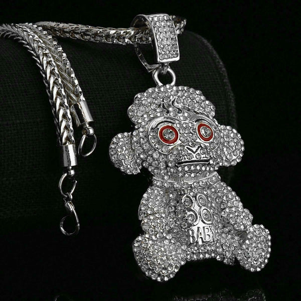 Baby 38 Iced out Pendant Silver Plated Franco Chain 4mm 24"