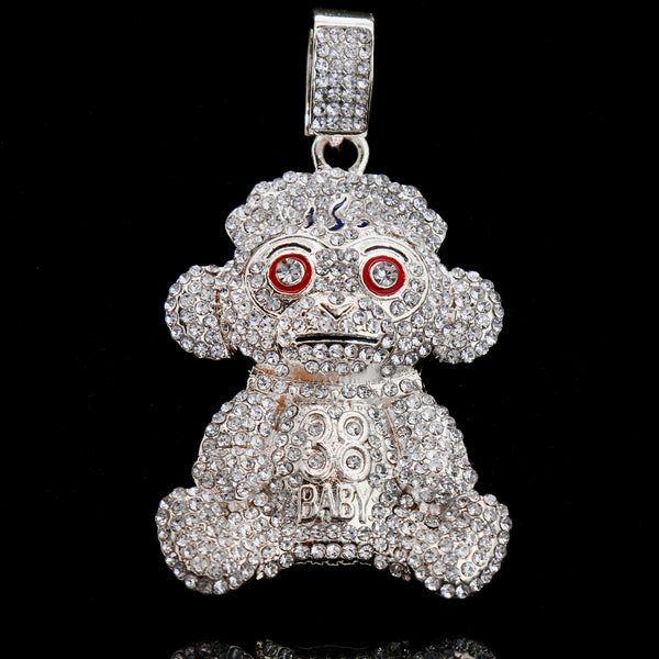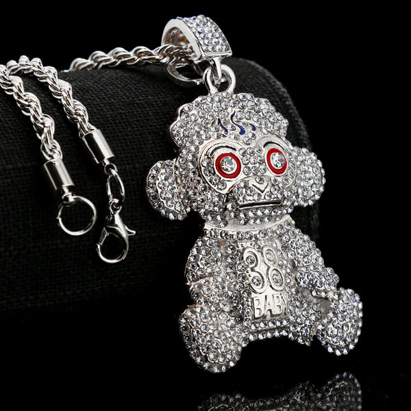 Baby 38 Iced out Pendant Silver Plated Rope Chain 4mm 24"