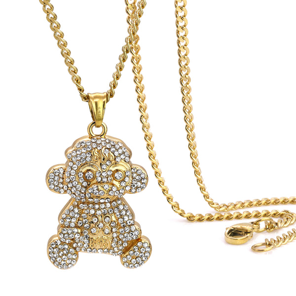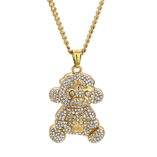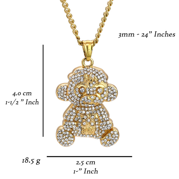 Baby Monkey 38 Pendant 24" Cuban Chain Hip Hop Style 18k Gold Stainless Steel
